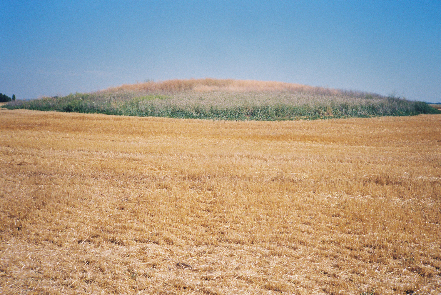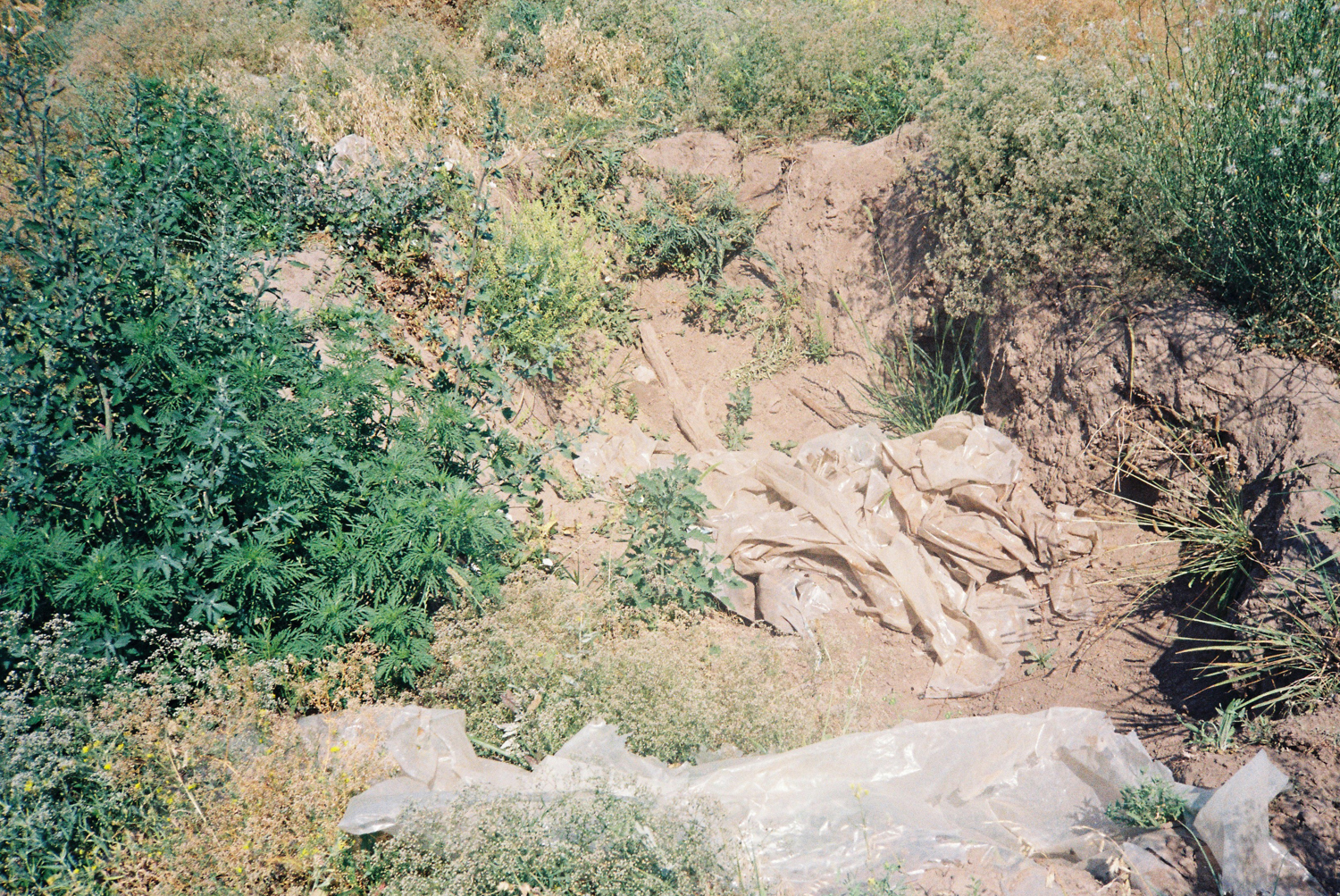 «Тут наліво!», — командує Володимир, і ми їдемо вгору й зупиняємося біля ряду будинків. Виходимо з машини — жодного кургану не видно, але я далі піднімаюся за своїм компаньйоном, дорогою минаючи льонок звичайний (Linaria vulgaris) і куничник (Calamagrostis). Кургани знаходити нелегко. Їхнє розташування зазвичай не афішують — мовляв, щоб захистити їх від незаконних розкопок. І все ж мені вдалося знайти в інтернеті карту у відкритому доступі з сотнями позначок місць, де мають бути розташовані кургани. Я ретельно вивчала цю мапу перед поїздкою. Однак Володимиру не потрібно мапи. Перше, на що наштовхуємося, сягнувши вершини пагорба, — великий шмат пластику, що зазвичай прикриває розкопки на ніч. Але тут він явно довше за одну ніч. Складки матеріалу відбивають сонячне світло й нагадують шкіру масної істоти, що чигає в помаранчево-коричневій пилюці. Кургани часто можна знайти у такому стані. Під час попередніх подорожей я не раз приїздила в місця, які на мапі мені виглядали як кургани, а натомість я, бувало, знаходила купу сміття, ледь помітний горбик посеред зораного поля чи навіть звичайний супермаркет.