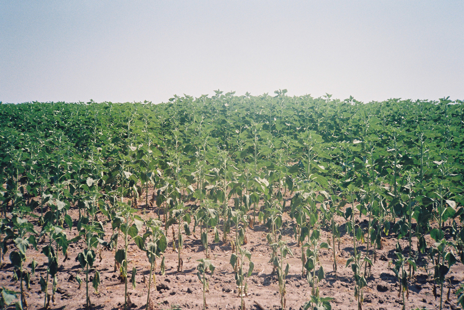 Ми їдемо далі на північ до місця, де сподіваємося знайти ще один курган. Ми з Володимиром пробираємося вузькою стежкою між полем соняшників і посадкою. «Тут лисичка мишку ловила, а тут кабанчик пробігав», — тлумачить Володимир неглибокі ямки в пилюці. Вміння збагнути, хто і що тут було, за їхніми слідами стане у пригоді за кілька хвилин. Згідно з геоміткою на моїй мапі та пам’яттю Володимира, ми мали б вийти прямо на курган. Натомість ми можемо лише припустити, що він тут був: про його колишню присутність нам свідчить ледь помітний горбик діаметром близько 20 метрів посеред поля. Ми обоє розчаровані, але не здивовані. Курган розорали, і він — чи те, що він нього залишилося, — не перший, який я знаходжу між рядами соняшників у такому стані. З розширенням площ і інтенсифікацією виробництва сільського господарства наприкінці існування Російської імперії та під час НЕПу в СРСР дедалі більше степових земель мусили поступитися ріллі. Соняшники — одну з основних українських монокультур — садять тут вже понад 100 років.